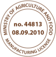 which certifies the right to develop activities in the sphere of food production series A no. 44813/ 08.09.2010, issued by Ministry of Agriculture and Food
