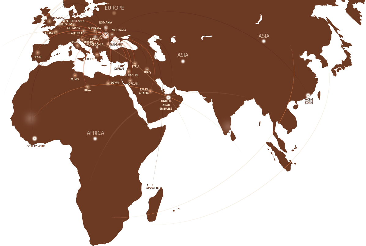 United Arab Emirates, Oman, Saudi Arabia, Kuwait, Bahrain, China, Hong Kong, Jordan, Iraq, Lebanon, Pakistan, Singapore, Syria, Sri Lanka, Vietnam